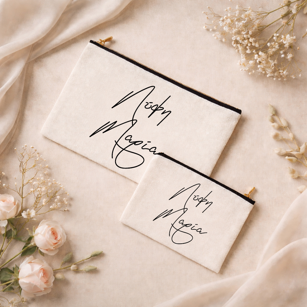 Η προσωποποίηση εφαρμόζεται στα νεσεσέρ και τις παντόφλες, προσθέτοντας μια προσωπική πινελιά, χωρίς να αλλοιώνει τον ήρεμο και elegant χαρακτήρα του σετ.